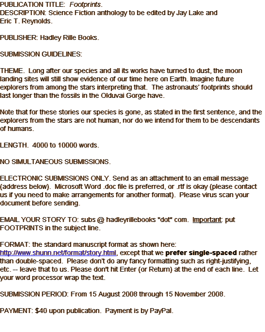 Thanks to all who have sent stories for this anthology.